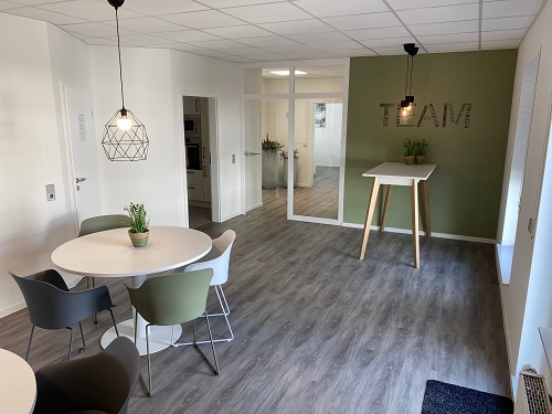 Neben acht weiteren Büroarbeitsplätzen entstand auch ein neuer Aufenthaltsbereich mit einer weiteren Kaffeeküche für unsere Mitarbeiter.